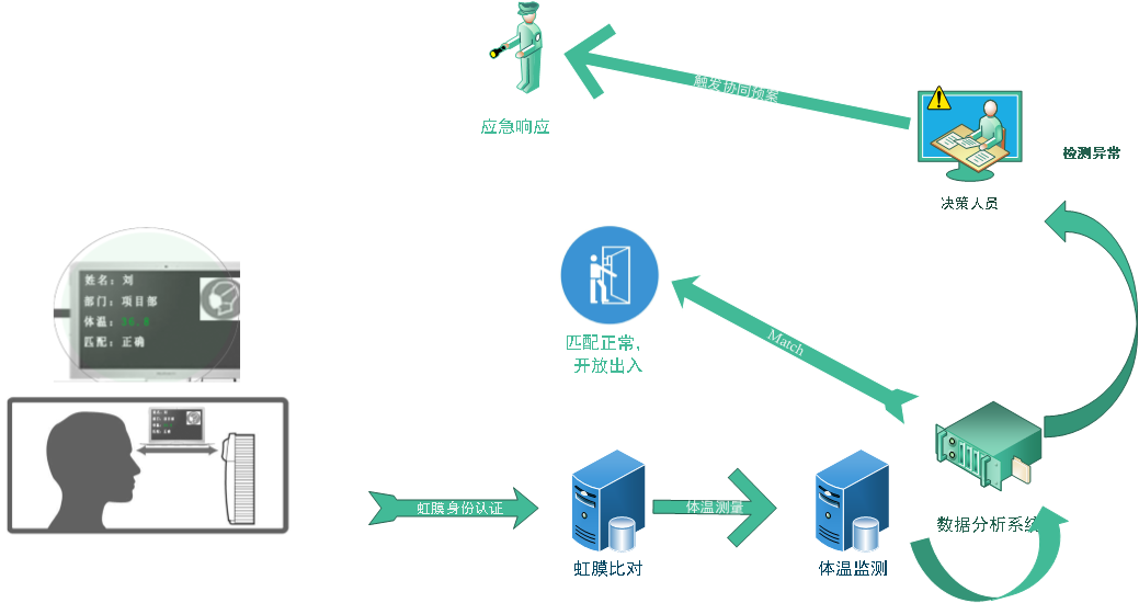 说明,湖北省内疫情传播已经得到了基本阻断,企业复工也基本全面恢复,门禁和通行成为安全复工的重要环节,疫情之下的门禁场景新增了戴口罩快速识别身份,非接触式体温测量,工作考勤等新的需求。